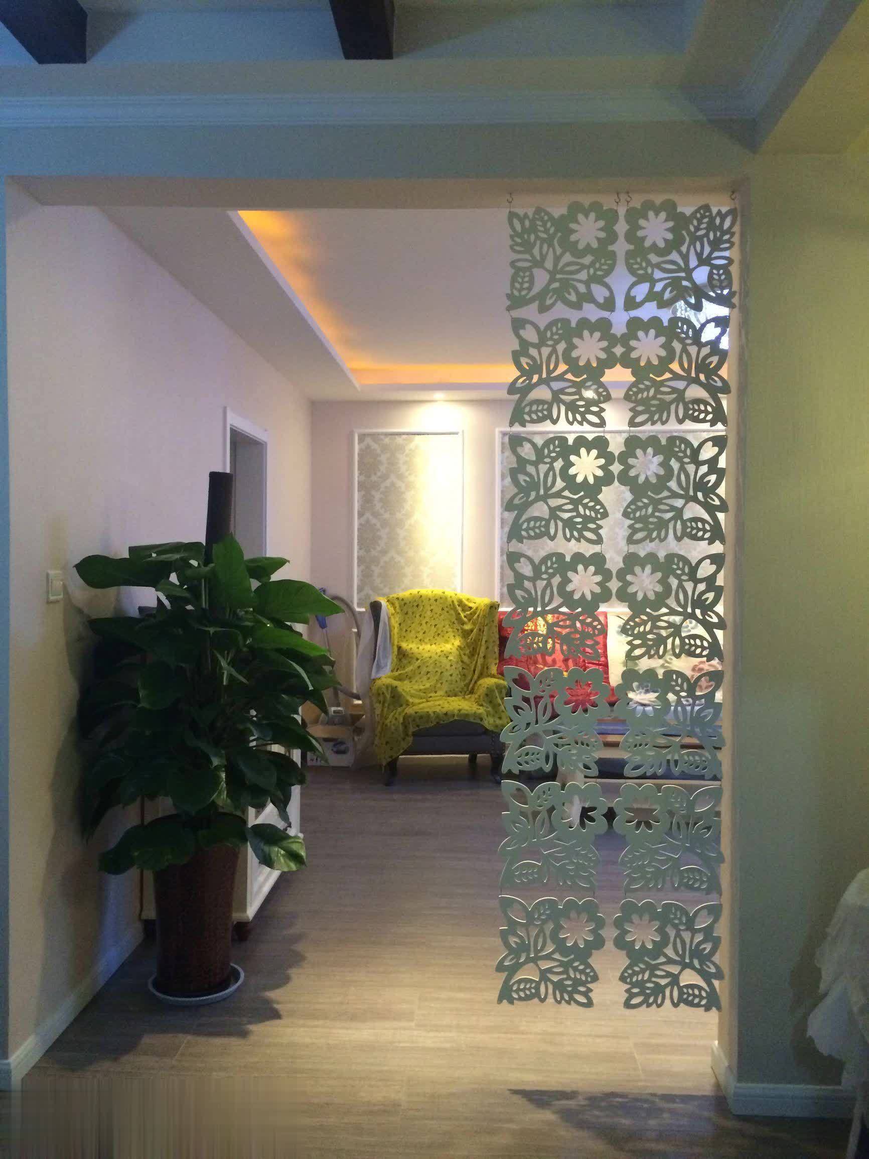 客厅的隔断是从网上购置的小物件,放在这里还挺和谐的。