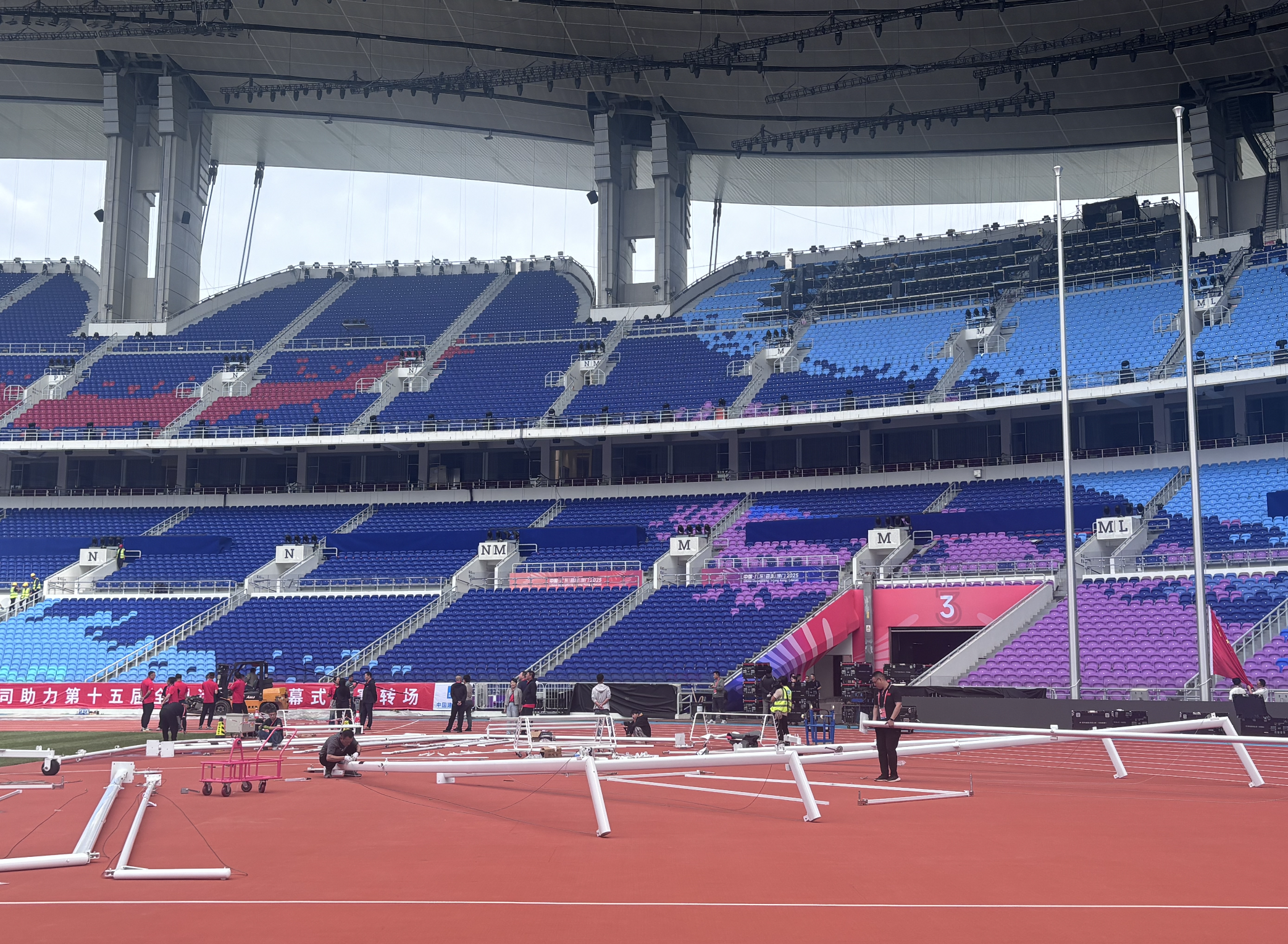 从撤场工作开启的第一分钟,一场无声的赛跑已经开始——十五运会首场田径比赛将于11月15日开展。